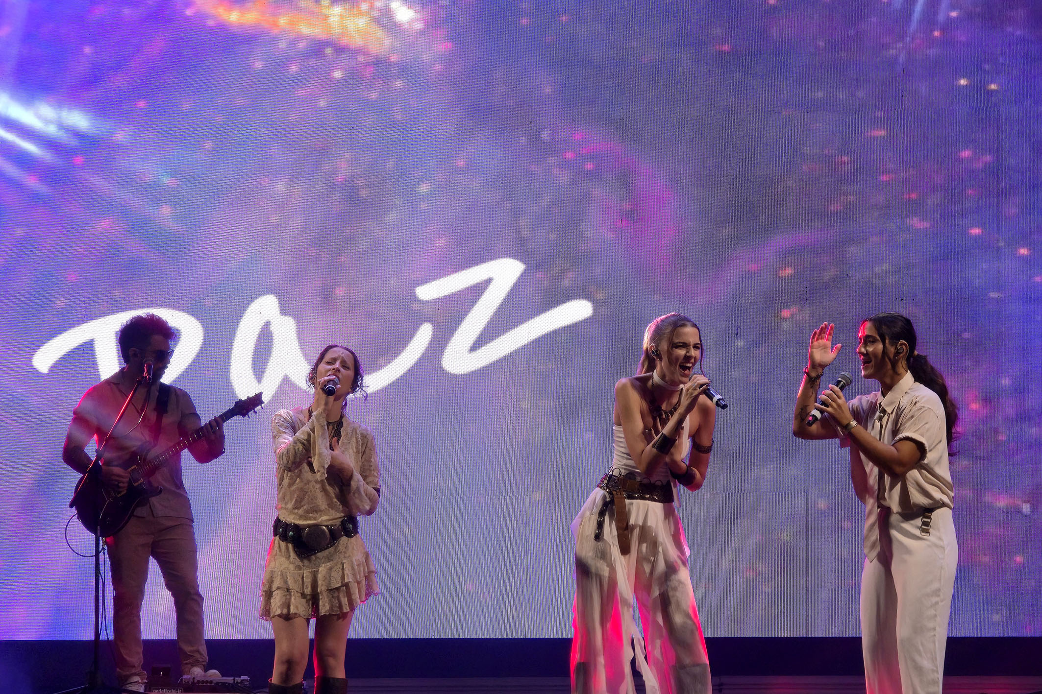 No repertório, canções como “Querendo Te Beijar” e “À Flor da Pele” reforçaram a identidade do grupo, que aposta em letras sensíveis e arranjos delicados. O público também pôde conferir músicas do EP “Um Tanto de Nós”, trabalho que explora as várias fases do amor e as relações humanas, com sonoridade leve e boas vibrações.
