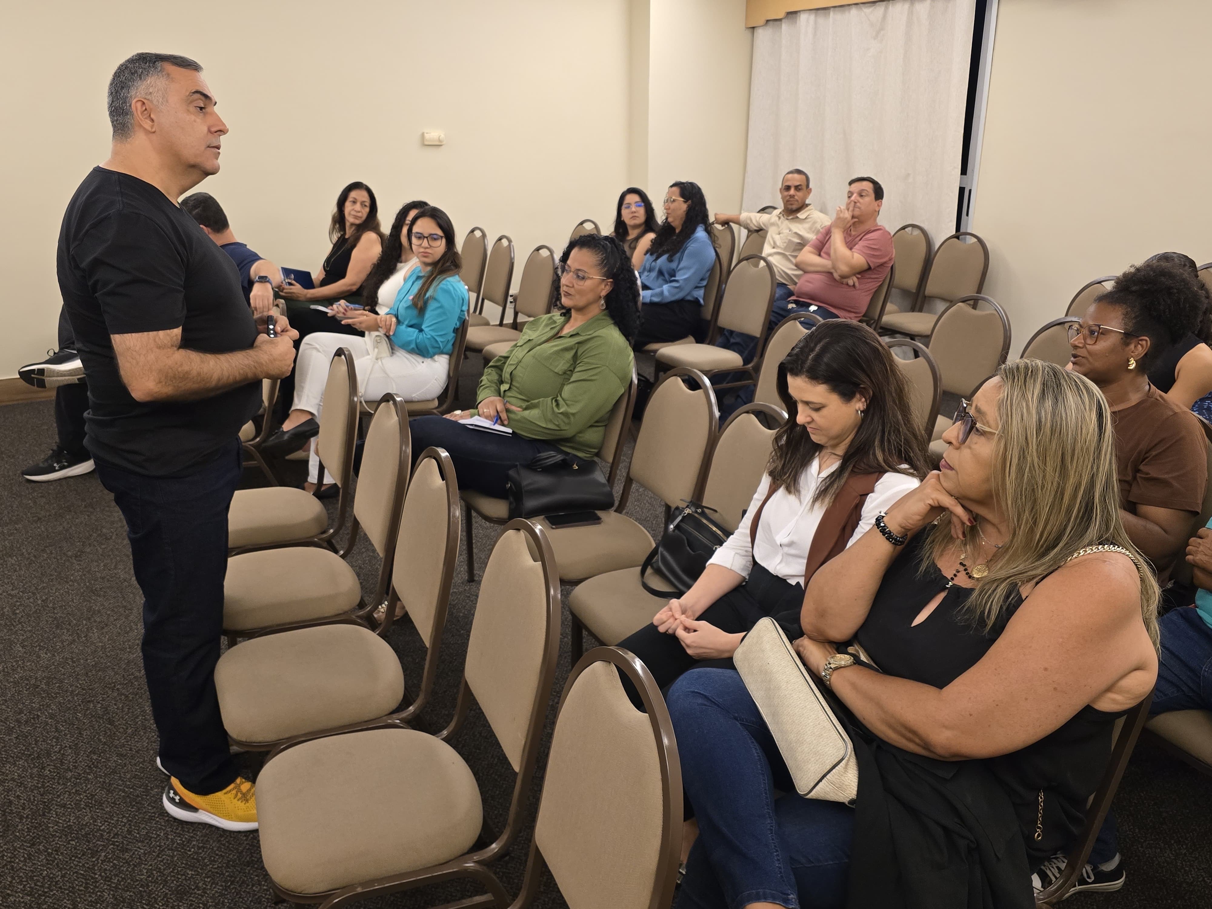 No segundo, ele apresentou “O Poder do Atendimento que Encanta”, enfatizando que o atendimento vai além da técnica e envolve emoção. O facilitador esmiuçou as três dimensões da experiência — técnica, emocional e simbólica — e mostrou práticas como o uso da linguagem corporal positiva, o sorriso e a chamada Regra de Ouro: tratar cada cliente como alguém que se ama, reforçando a importância do vínculo humano nas relações comerciais.